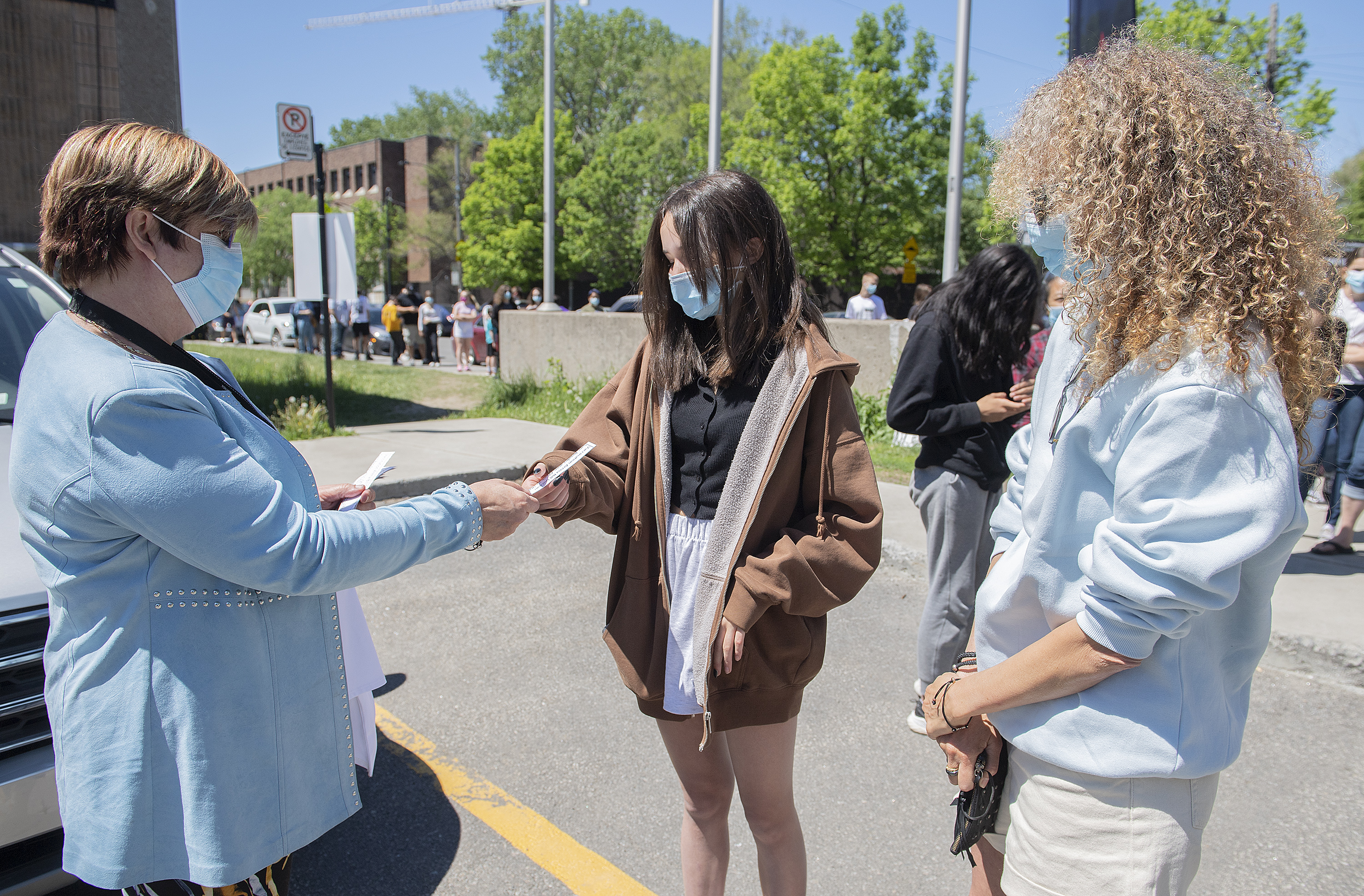 Quebec’s public health institute reports that about 57 per cent of the population has received at least one dose of the vaccine.