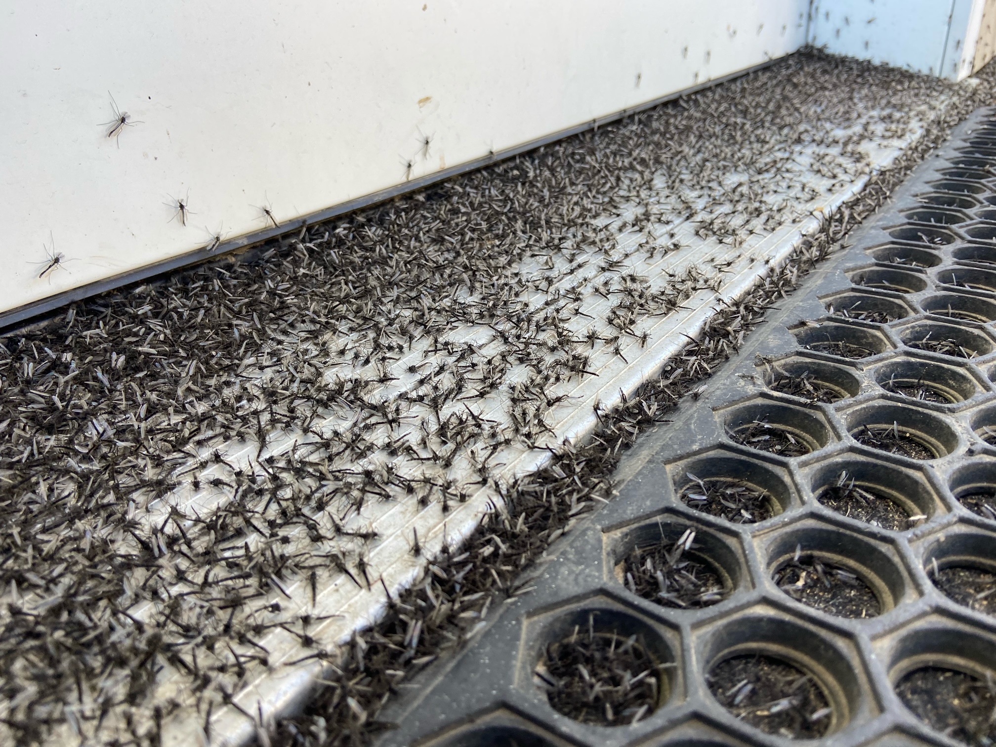 Because chironomids come out in swarms, Sperling encouraged people to wear their face masks to keep the bugs from flying into their mouths.