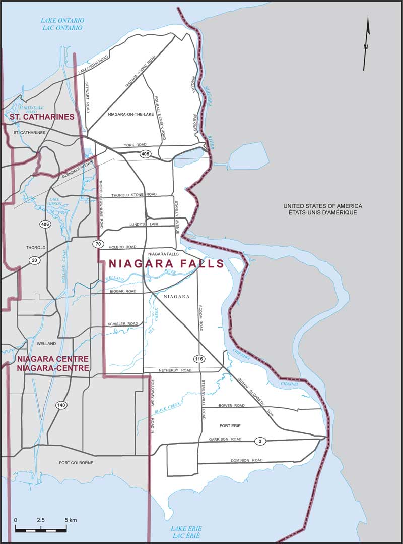 The urban-rural Niagara Falls riding consists of the regional Municipality of Niagara, including the city of Niagara Falls, and the towns of Fort Erie and Niagara-on-the-Lake.