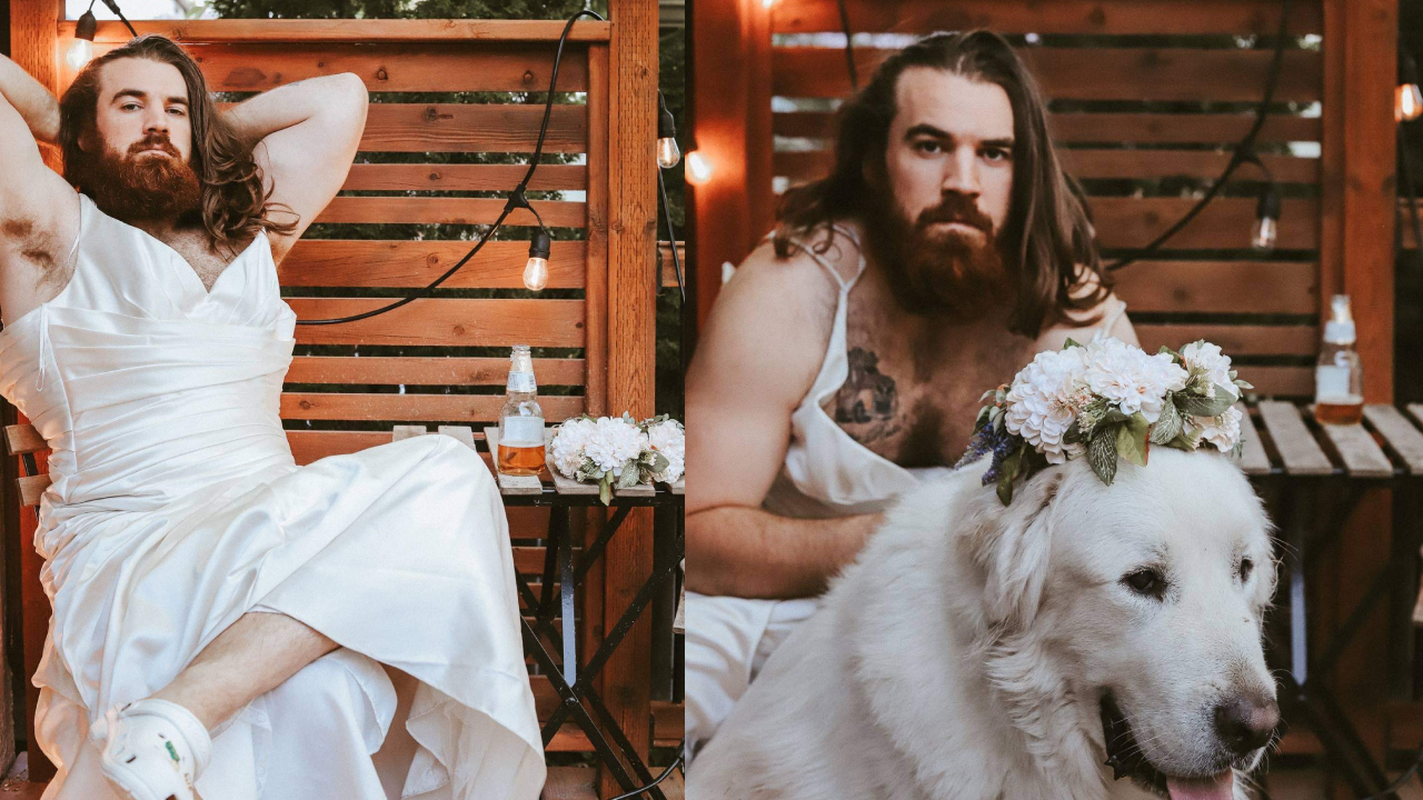 A former Winnipeg Blue Bomber dressed up in a wedding gown to get his COVID-19 vaccine – and raised some money for a local LGBTQ organization just before Pride month began.