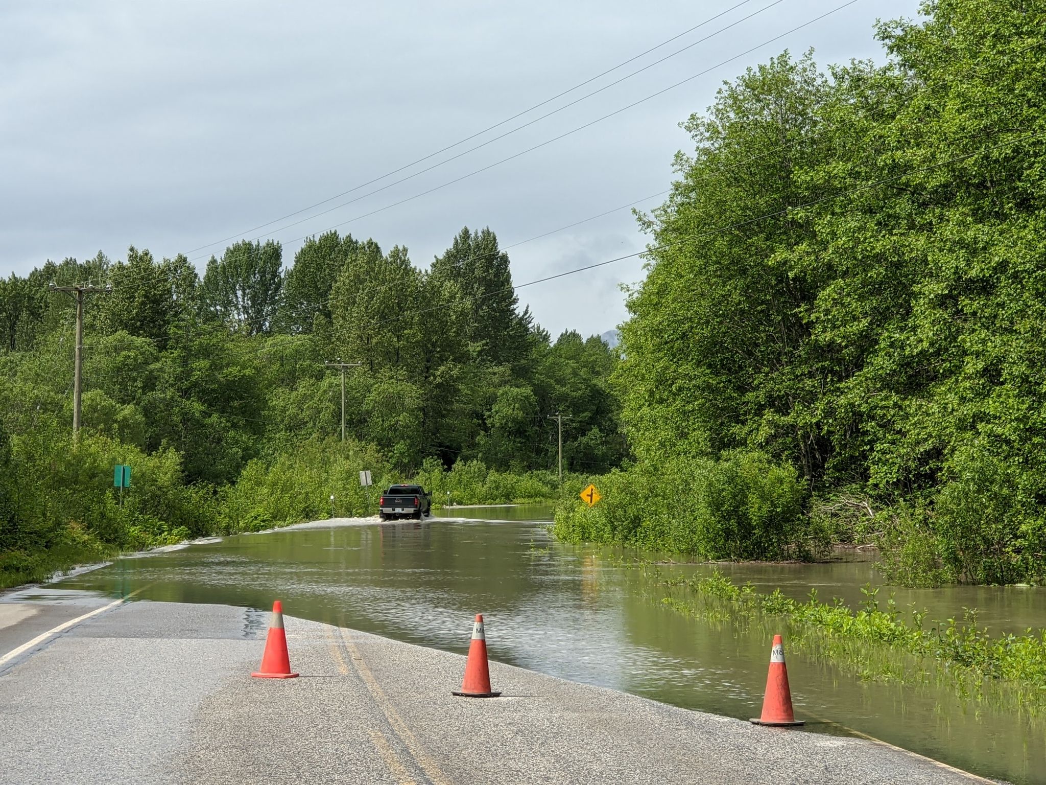 A 44-kilometre section of Highway 113, between Spruce Drive and Nass Road along the Nass River was closed due flooding.
