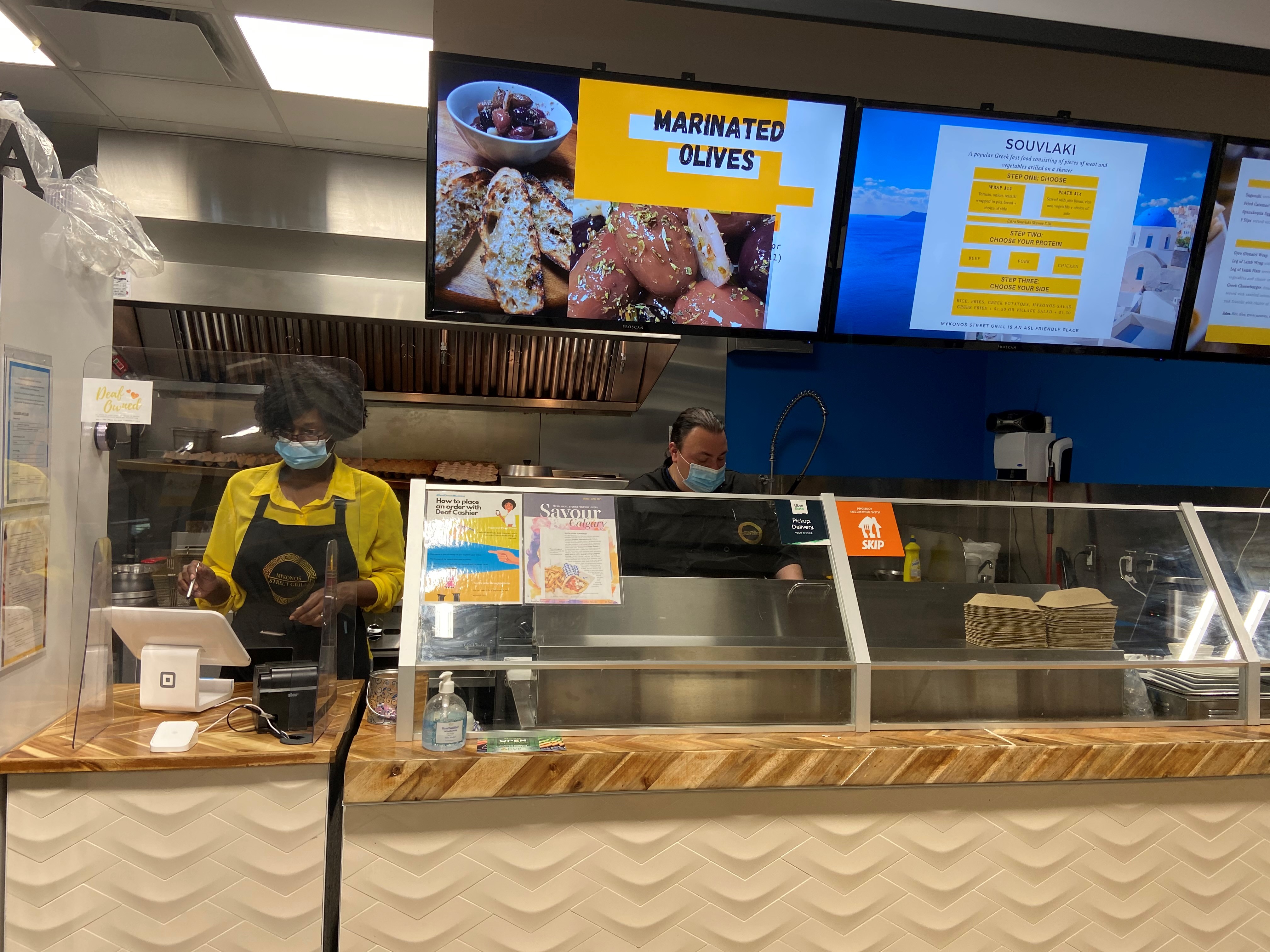 “Unfortunately, since COVID(-19) hit, everyone has had to wear masks and that has been really hard for the hard-of-hearing community for lip reading, so we’ve had to adjust — using an iPad, for example — and people can point on a paper I have posted to help them order.”