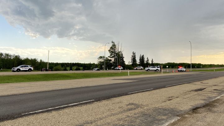 The eastbound lanes of the Yellowhead Highway were closed and traffic was being detoured onto side roads due to a fatal collision east of Edmonton Friday afternoon.