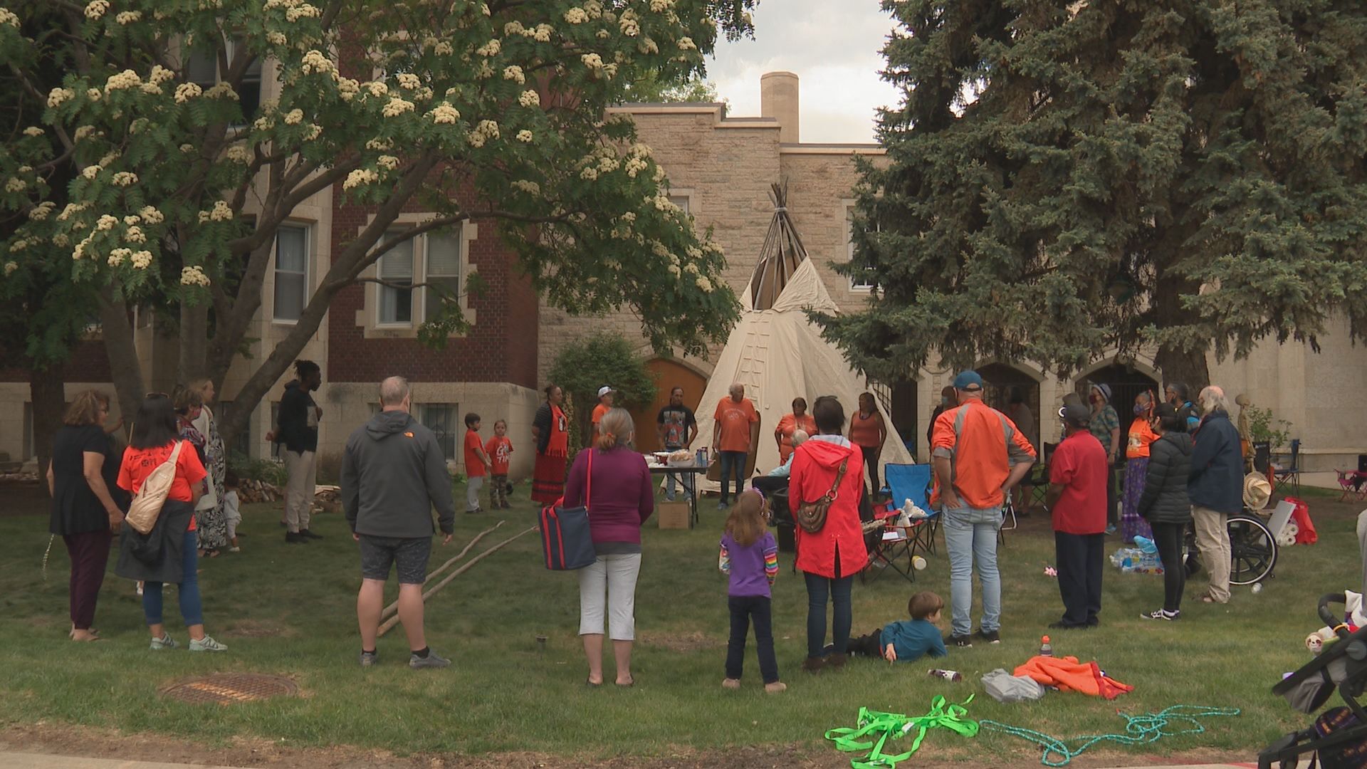 A teepee is on the lawn of St. Joseph’s Basilica in Edmonton to honour the bodies of 215 children found buried at a former residential school in Kamloops.