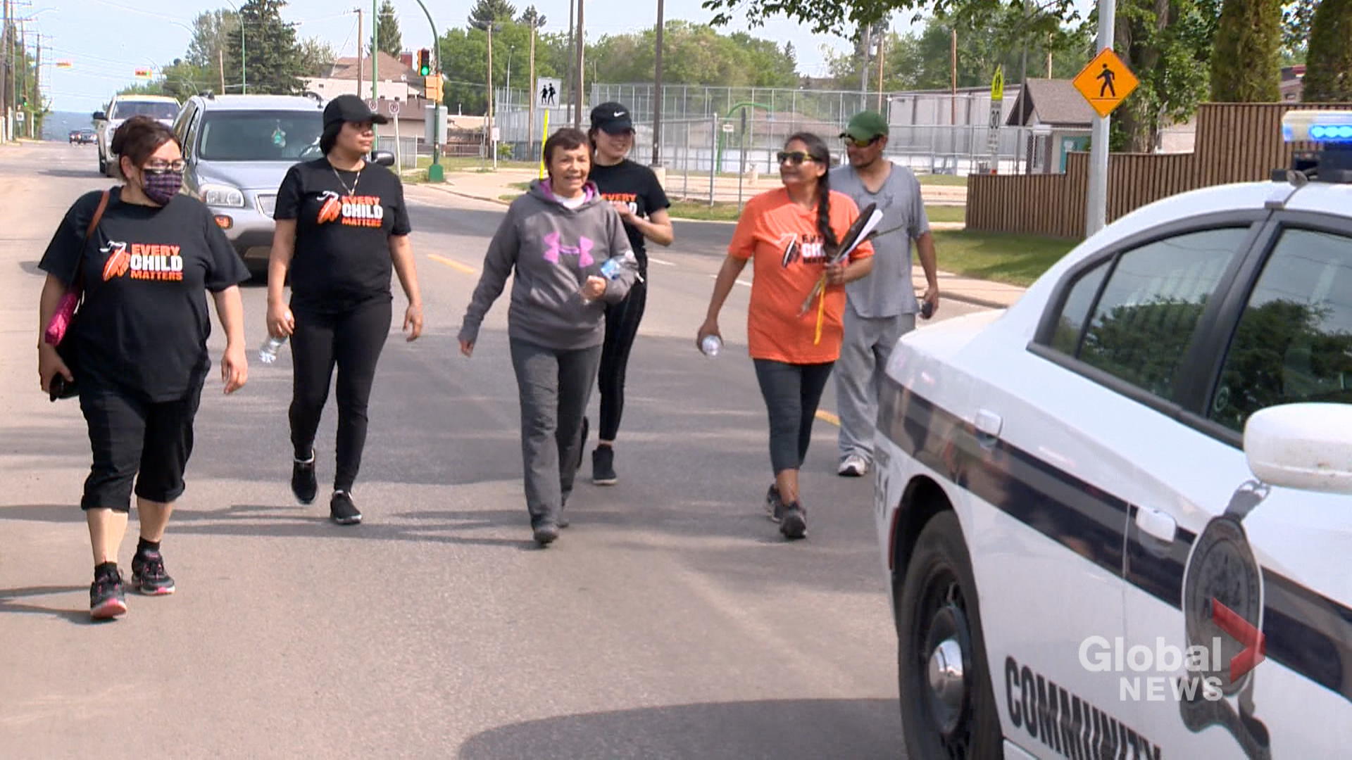 She is walking to raise awareness about life at residential schools, while also wanting to end provincial programs that remove children from their families.