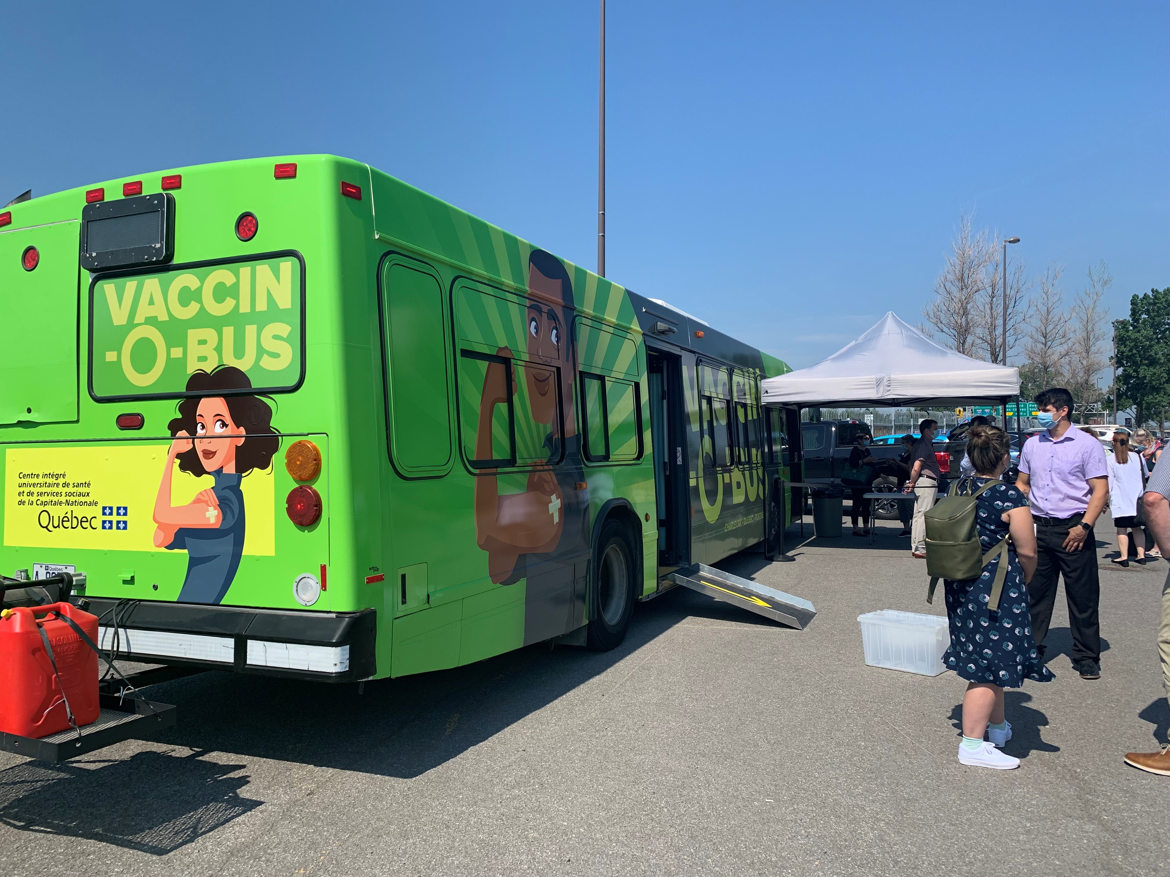That’s the idea. The Vaccin-O-Bus will be driving around the Quebec City region, including in parks and at beaches. It has the capacity to vaccinate up to 130 people a day.