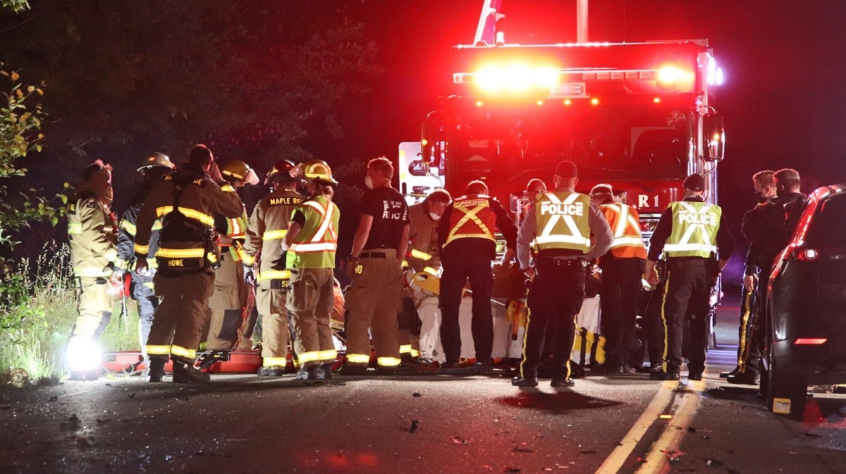 Multiple people were sent to the hospital from an overnight collision in Maple Ridge involving three vehicles.