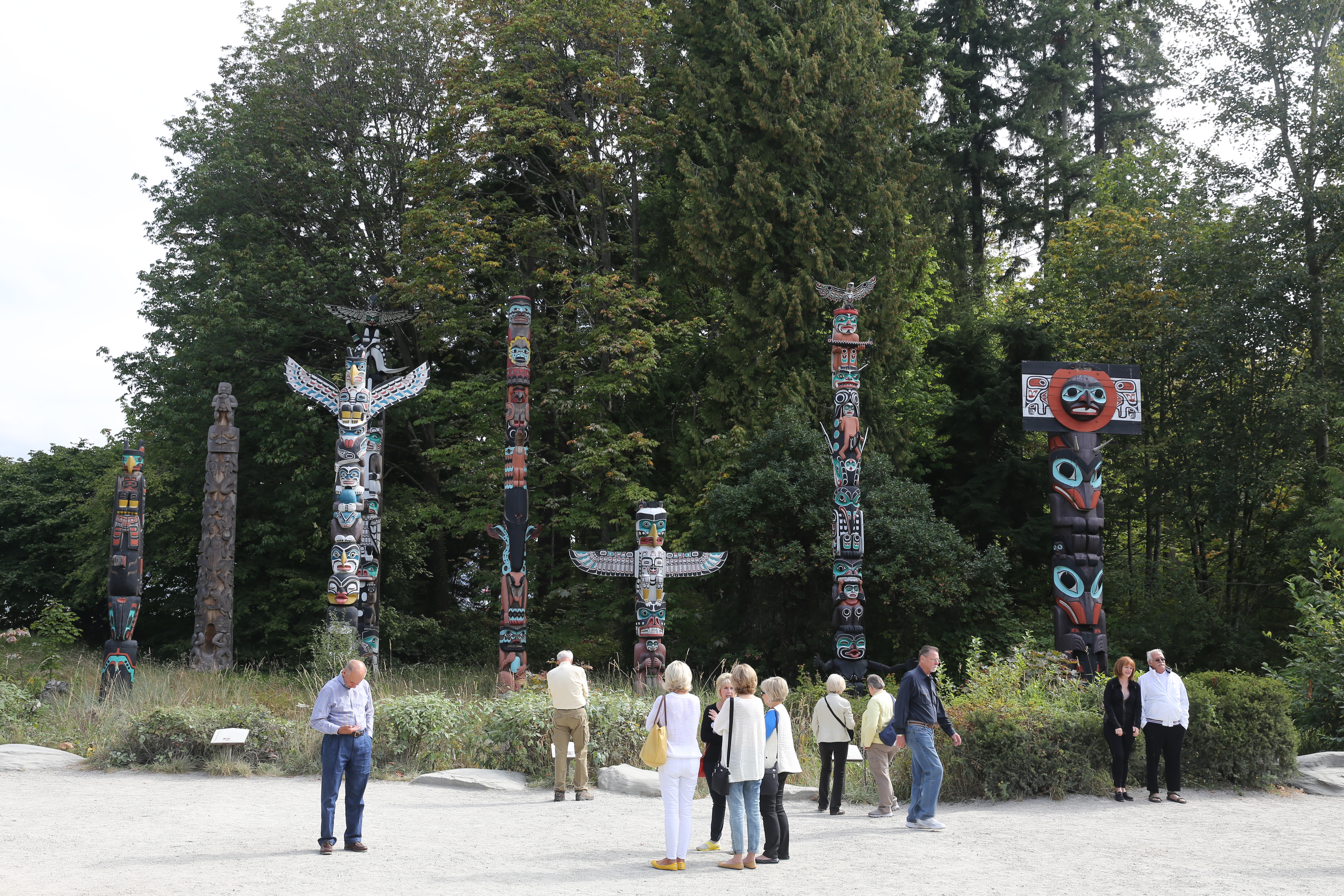 A man visiting Stanley Park was bitten on the leg by a coyote while standing by the totem poles, near the Brockton Oval, shortly after 11 p.m. Saturday.