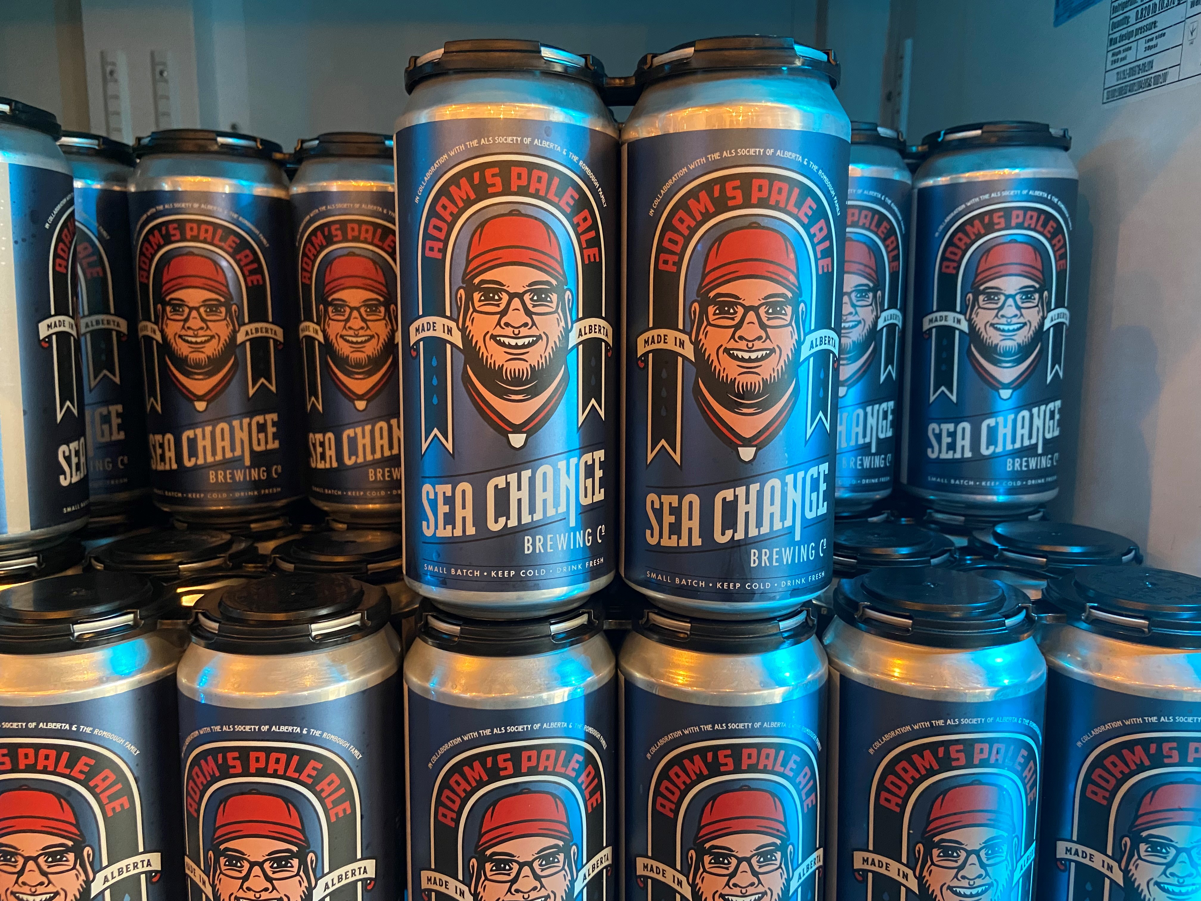 Rombough’s likeness is featured on Adam’s Pale Ale by Sea Change Brewing Company. The Edmonton business is donating $1 from each four-pack to the ALS Society of Alberta.