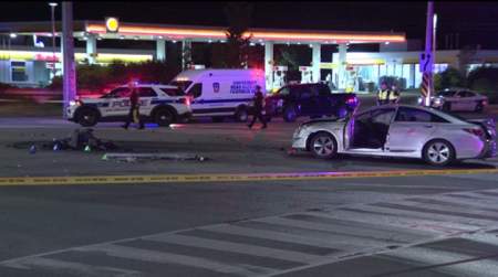 Police said the motorcycle and a car collided at the intersection. However, as of early Friday, the circumstances leading up to the crash weren’t immediately clear.