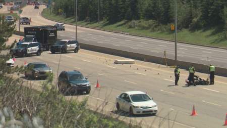 The westbound lanes of Whitemud Drive between 66 Street and 91 Street were closed for several hours as police investigated.