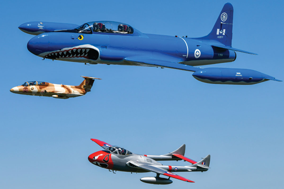 The group’s contingent will feature three of its planes — a T-33 Silver Star “Mako Shark,” a de Havilland Vampire and a L29 Delfin – and will be joined in Waterloo Region by a fourth plane from Flite Line Charters that will carry a banner of support.