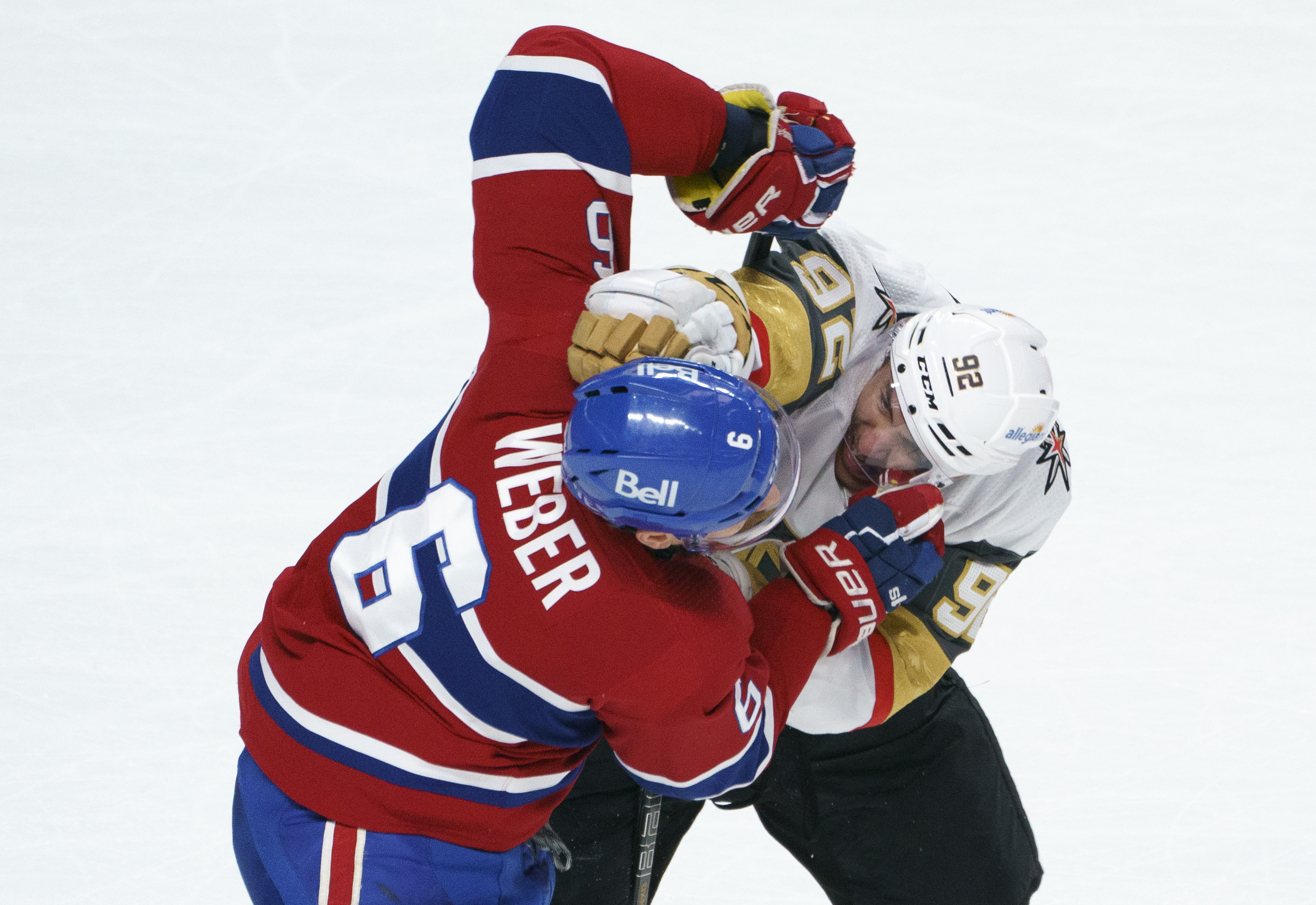 While the clock was winding down in the second period, the game continued in the Montreal end. Over 150 feet away in front of the Vegas goalie was another sport. It looked like World Wrestling Entertainment.