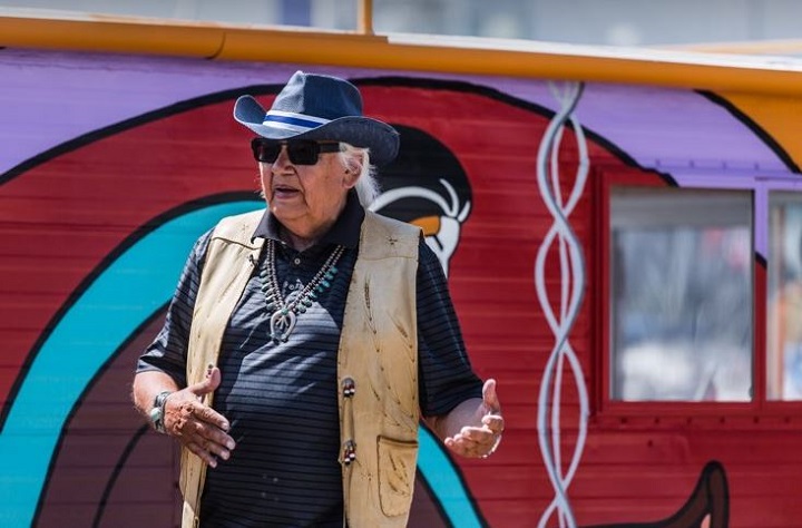The houseboat, covered in Indigenous art will serve as an interpretive learning centre – offering a place for people to engage with, ask questions of, and learn from the perspectives of an Indigenous Elder.