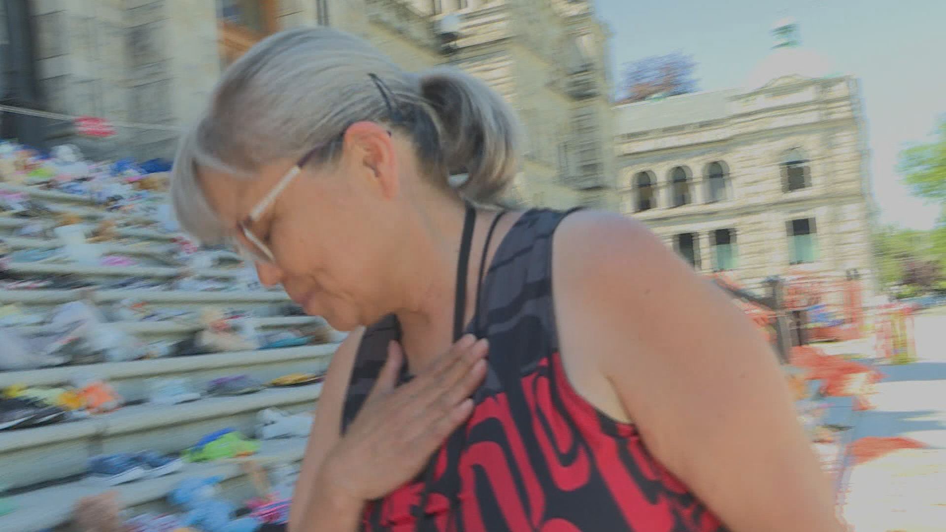 Notes, toys and shoes continue to accumulate on the steps of the B.C. legislature, where they will remain until at least Canada Day before being donated.