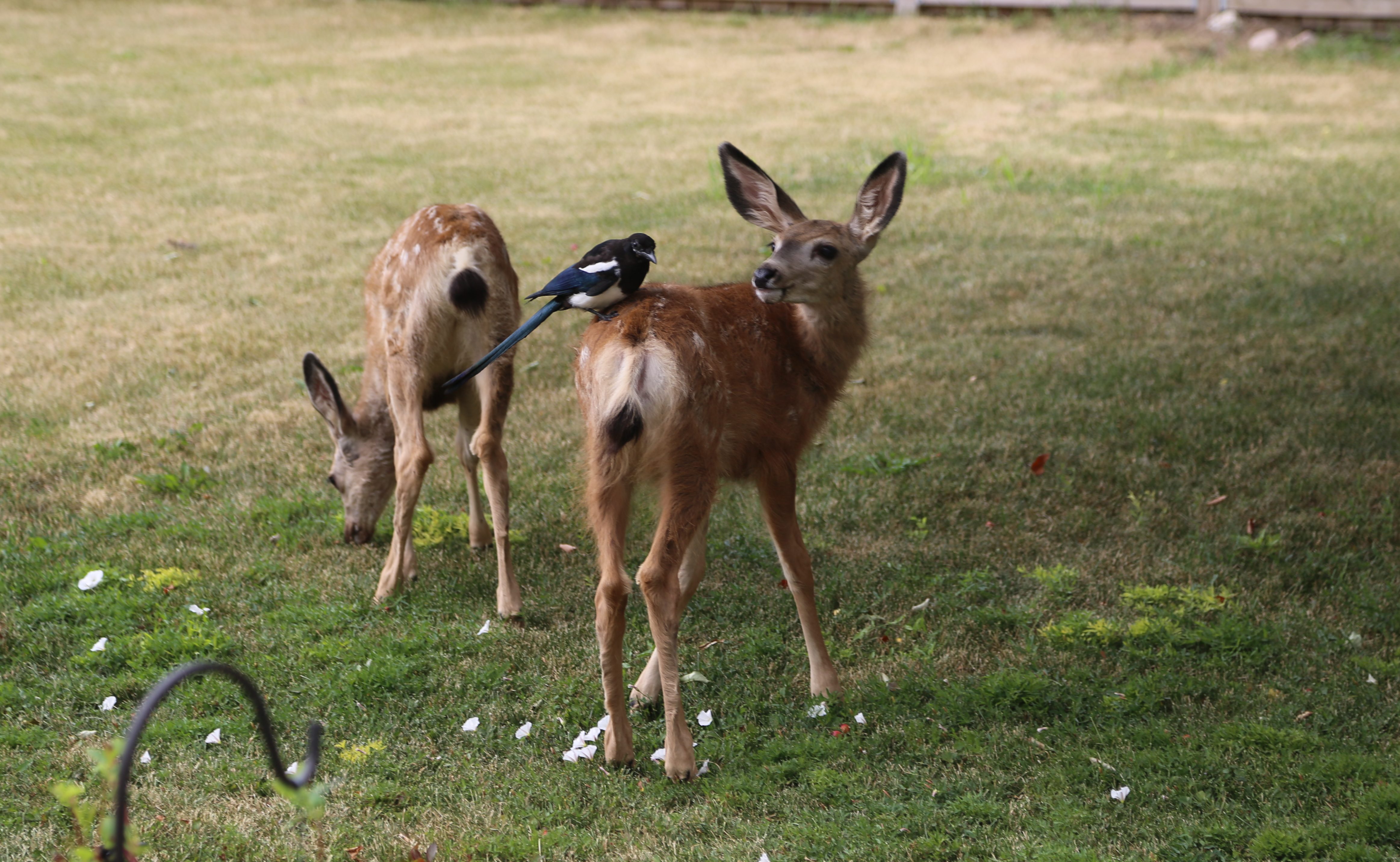 It’s the first time the Sawyers had seen a fawn on the patio. Usually, they can be found in the shade of their neighbours’ crab apple tree.