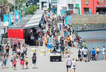 People walk in the Old Port in Montreal, Saturday, June 19, 2021, as the COVID-19 pandemic continues in Canada and around the world. THE CANADIAN PRESS/Graham Hughes