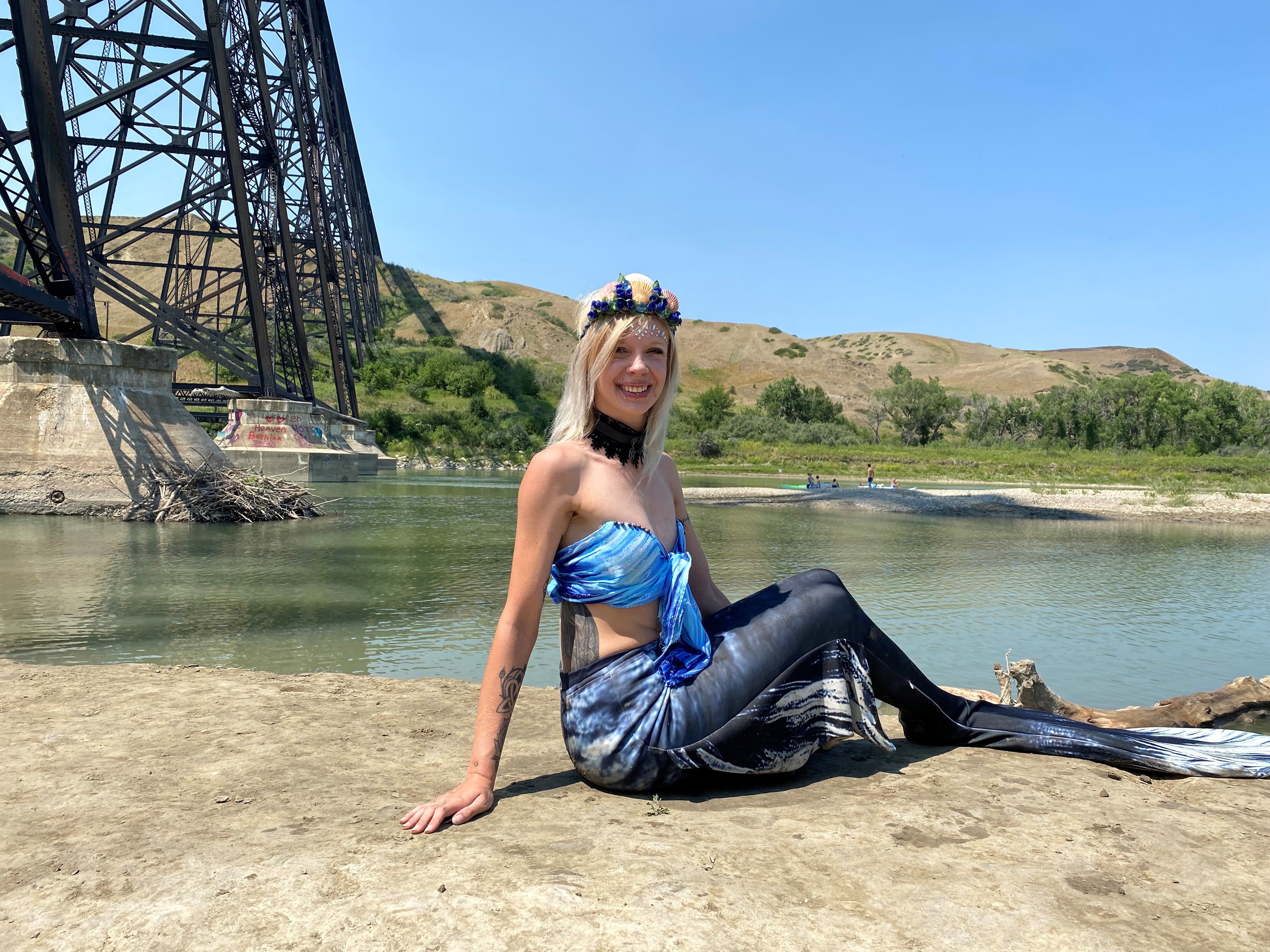 “This river is considered my home,” said mermaid Zenevieva a.k.a. Gray Young, sitting on the shore under the High Level Bridge in Lethbridge.