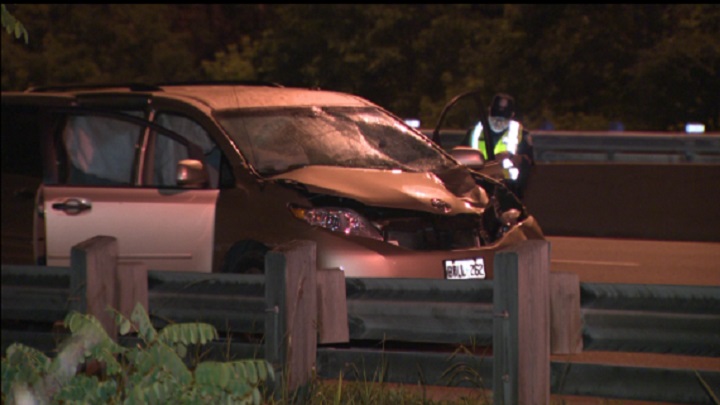 Emergency crews were called to the southbound lanes of the highway near Riverdale Park, south of the Prince Edward Viaduct, just before 10:40 p.m. with reports of a collision involving a pedestrian.