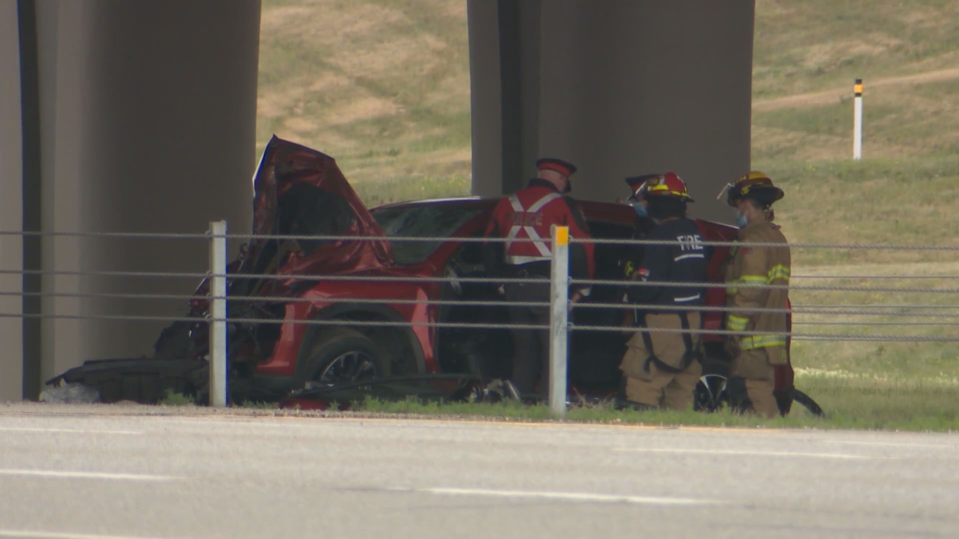 The driver was the only one in the vehicle when the collision happened at Stoney Trail by Country Hills Boulevard N.W. around 2 p.m.