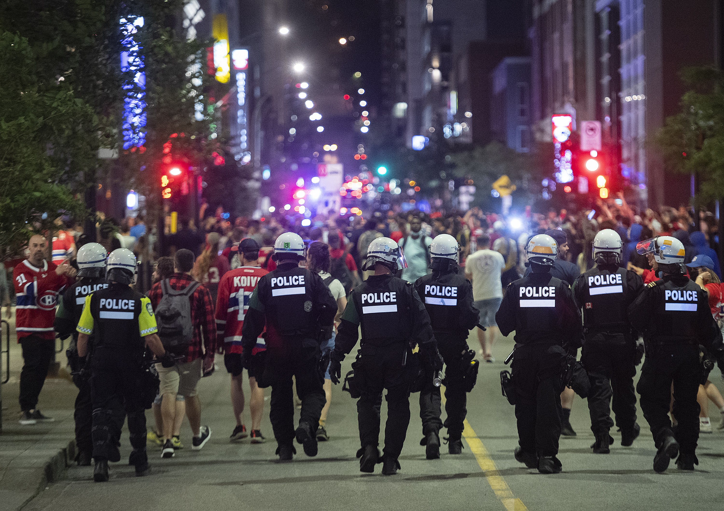 Montreal police say four arrests and 36 tickets were handed out as celebrations unfolded in the downtown core after a Game 4 overtime victory by the Canadiens over the Tampa Bay Lightning.