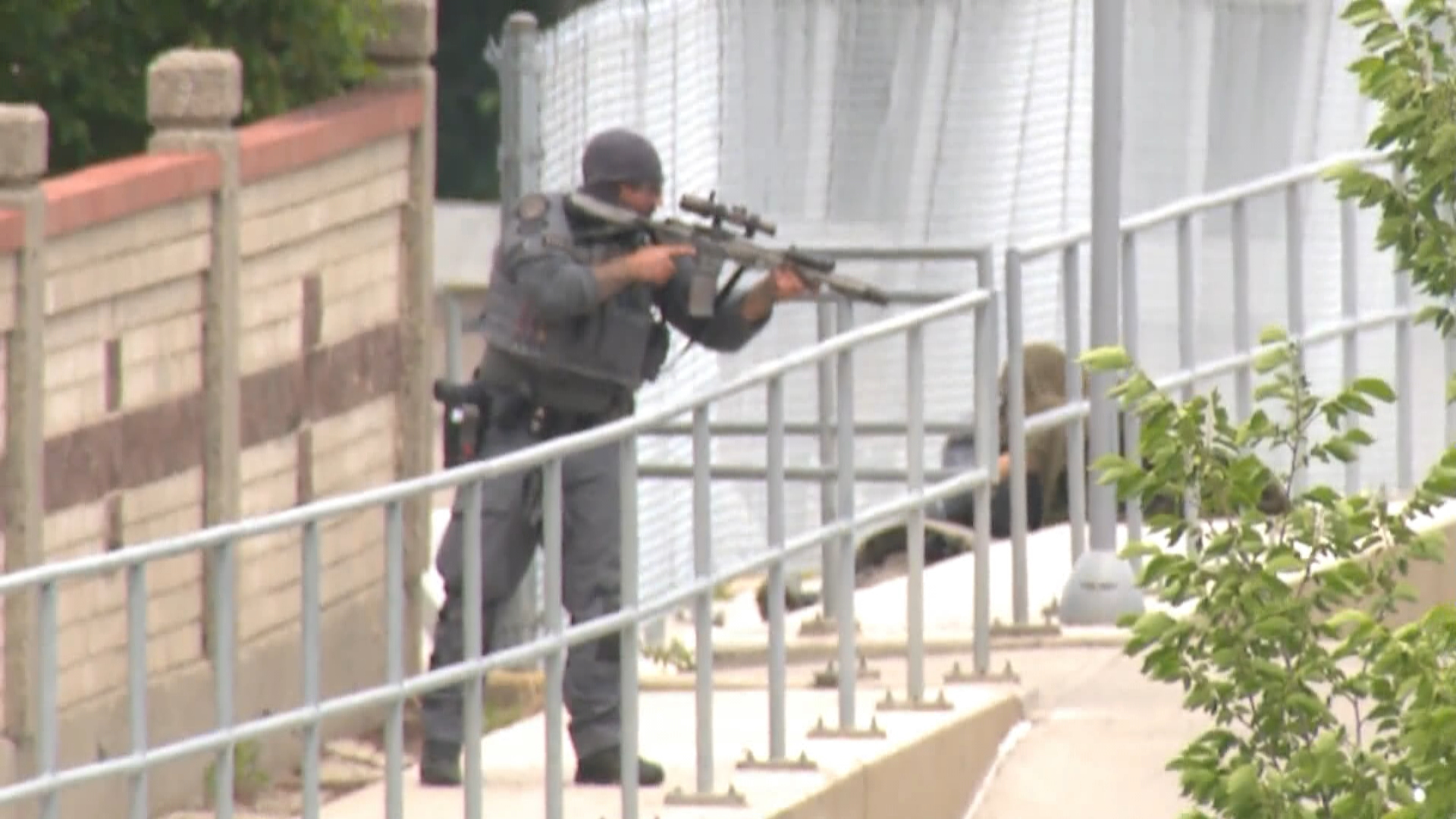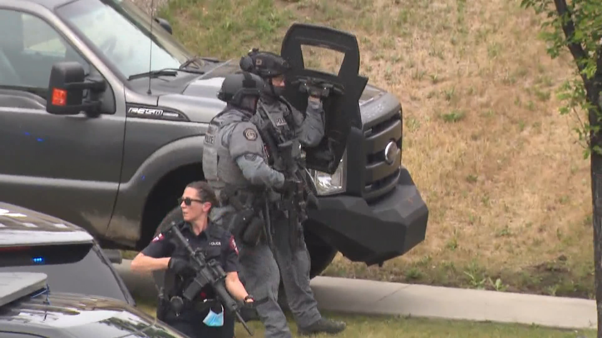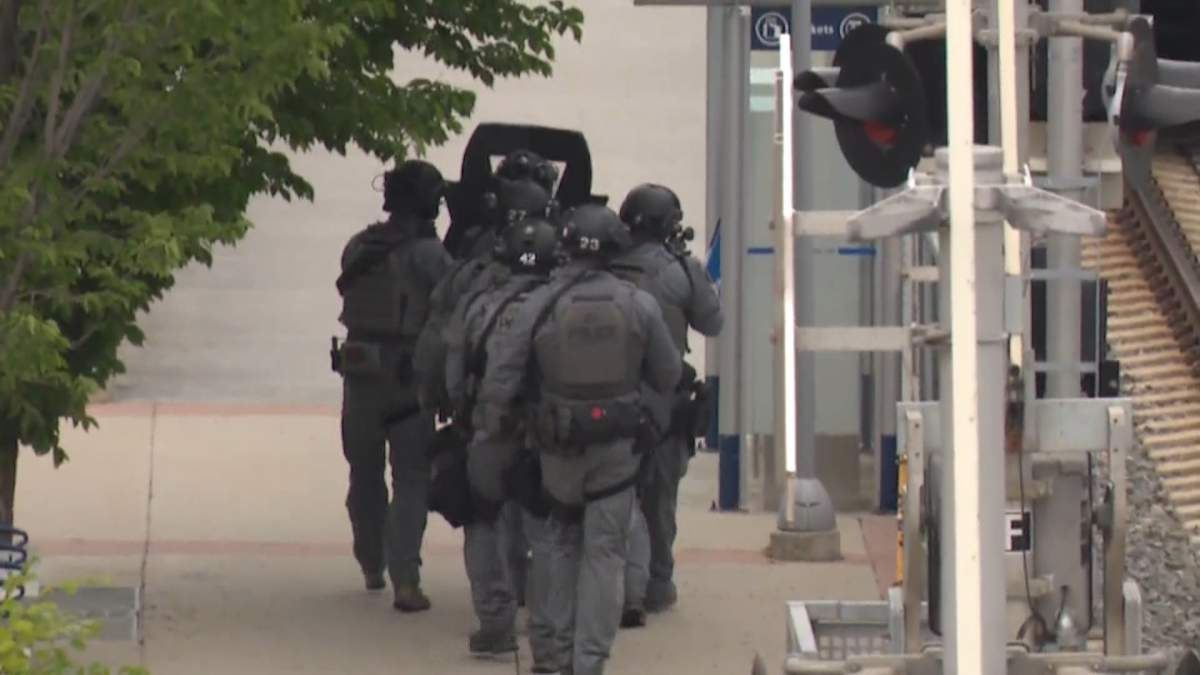 A number of police officers were seen at the southwest station throughout the afternoon, some with guns drawn, some in full tactical gear, and what sounds like two shots can be heard in audio from a Global News team on the scene.