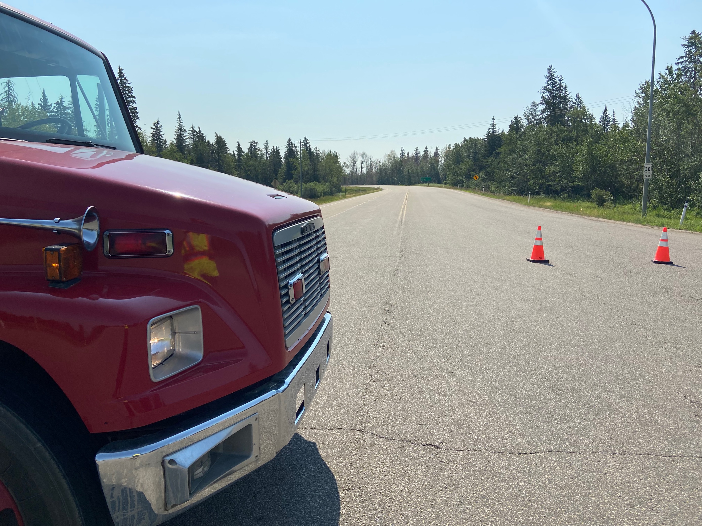 RCMP, fire and EMS crews remained on scene just before 9:30 a.m. Traffic was being diverted at Range Road 210 and Range Road 204.