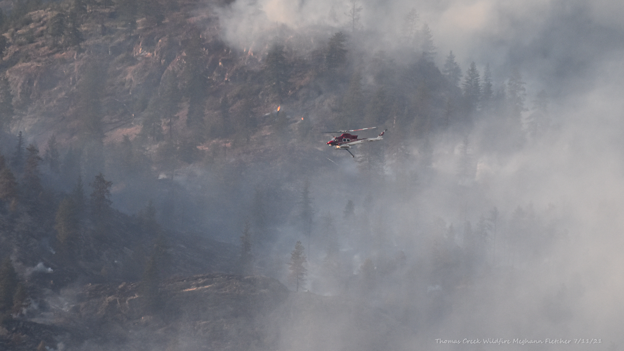 According to data from the BC Wildfire Service on Sunday afternoon, the Thomas Creek fire is around 3 kilometres to the northeast of Okanagan Falls.