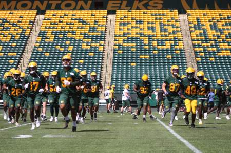 The Elks are back on The Brick Field at Commonwealth Stadium at 10 a.m. on Tuesday. All training camp sessions are closed to the public.