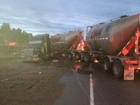 Investigators say the driver of a southbound semi was forced to heavily apply his brakes for unknown reasons, causing them to lock up. His empty tanker trailers then jackknifed into on-coming traffic. One vehicle hit the semi, but police call it a “glancing blow.”