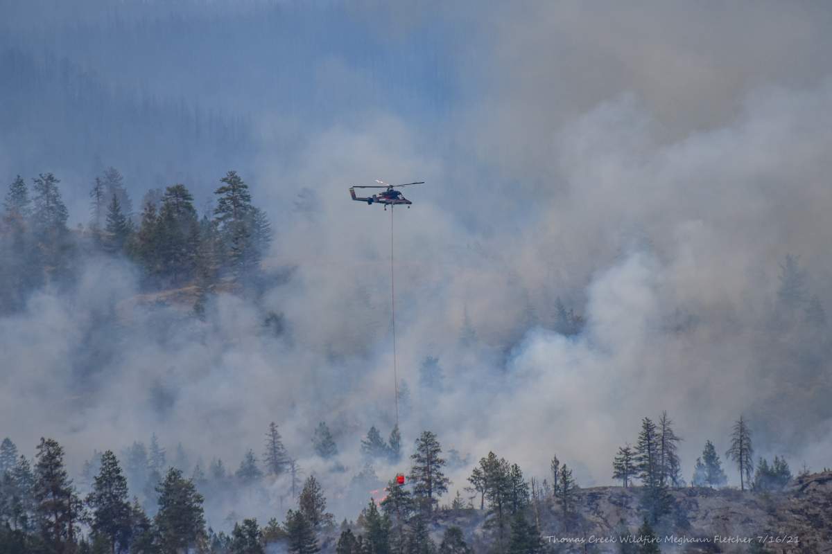 According to the BC Wildfire Service, the Thomas Creek fire near Okanagan Falls is at 5,500 hectares, up 500 hectares from Thursday. Discovered last Sunday, it’s still classified as being out of control.