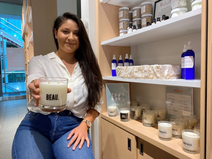 While enjoying some success with online sales of her Brandos Candos candles, CrazyBull says having them in The Nice Shop will help her build her business.