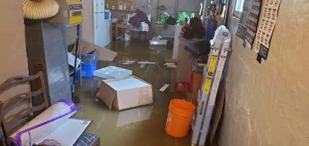 As the floodwater reached about five inches high, Claus says family friends came to the rescue with two water pumps to empty the basement, which as of Saturday evening, had not completely dried out.