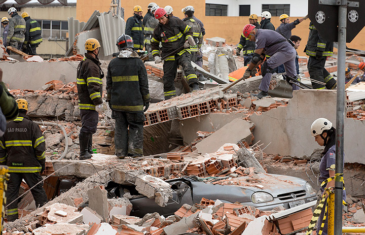 SAO PAULO, Brazil – A commercial building under construction in Brazil’s biggest city collapsed Tuesday, killing at least six people and sending large chunks of rubble and a blanket of dust onto nearby vehicles.