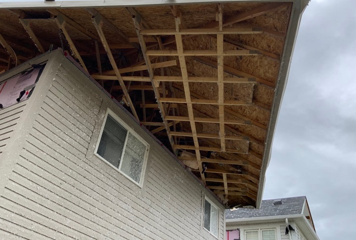 Global News observed a wide range of damage where houses with missing roofs and blown-out walls and windows were mixed with more minor damage, such as ripped-off shingles and soffits with intense damage indiscriminately isolated to pockets.