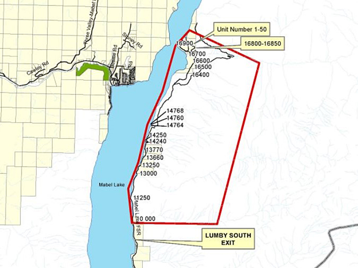 Located on the east side of Mabel Lake, around 41 kilometres northeast of Lumby, the wildfire is estimated at 600 hectares in size.