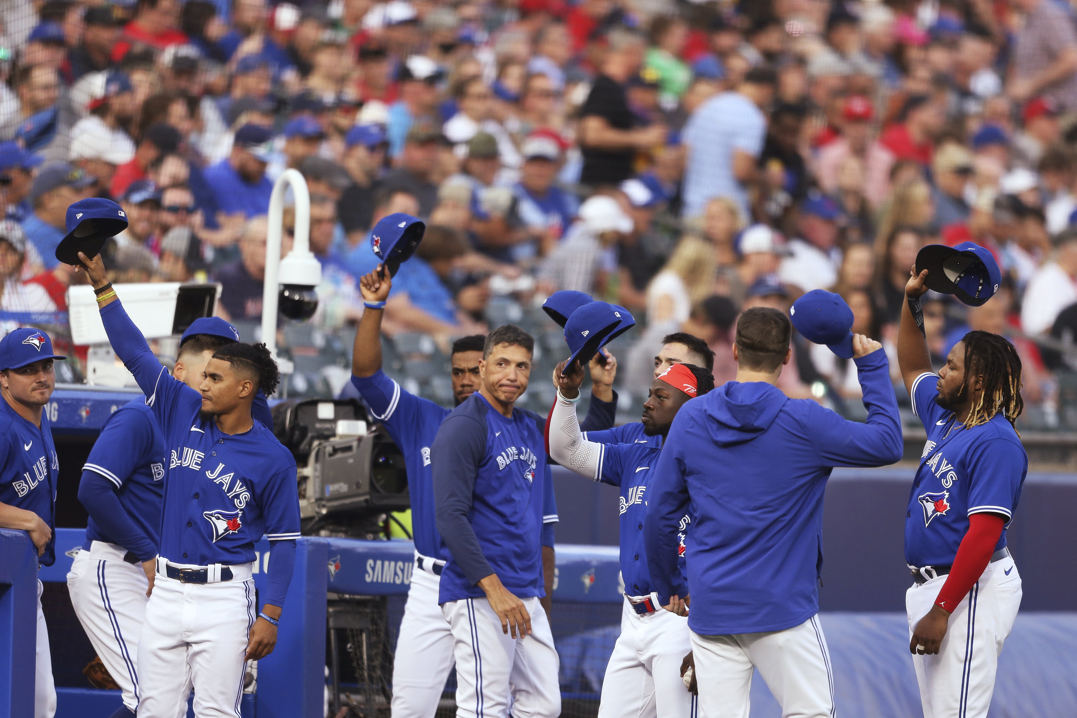 In the middle of the third inning, Toronto players and coaches came out of the dugout to salute the fans at Sahlen Field.