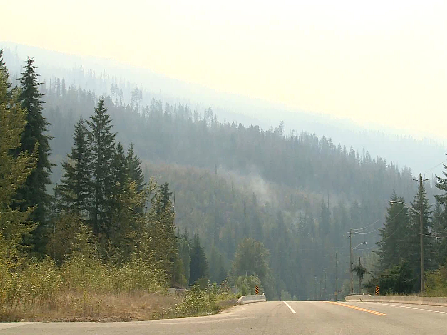 Fire chief Brett Ogino said “our crews had a fairly quiet night last night. They were working a lot of the highway. Still a lot of risk with some spot fires along there.”