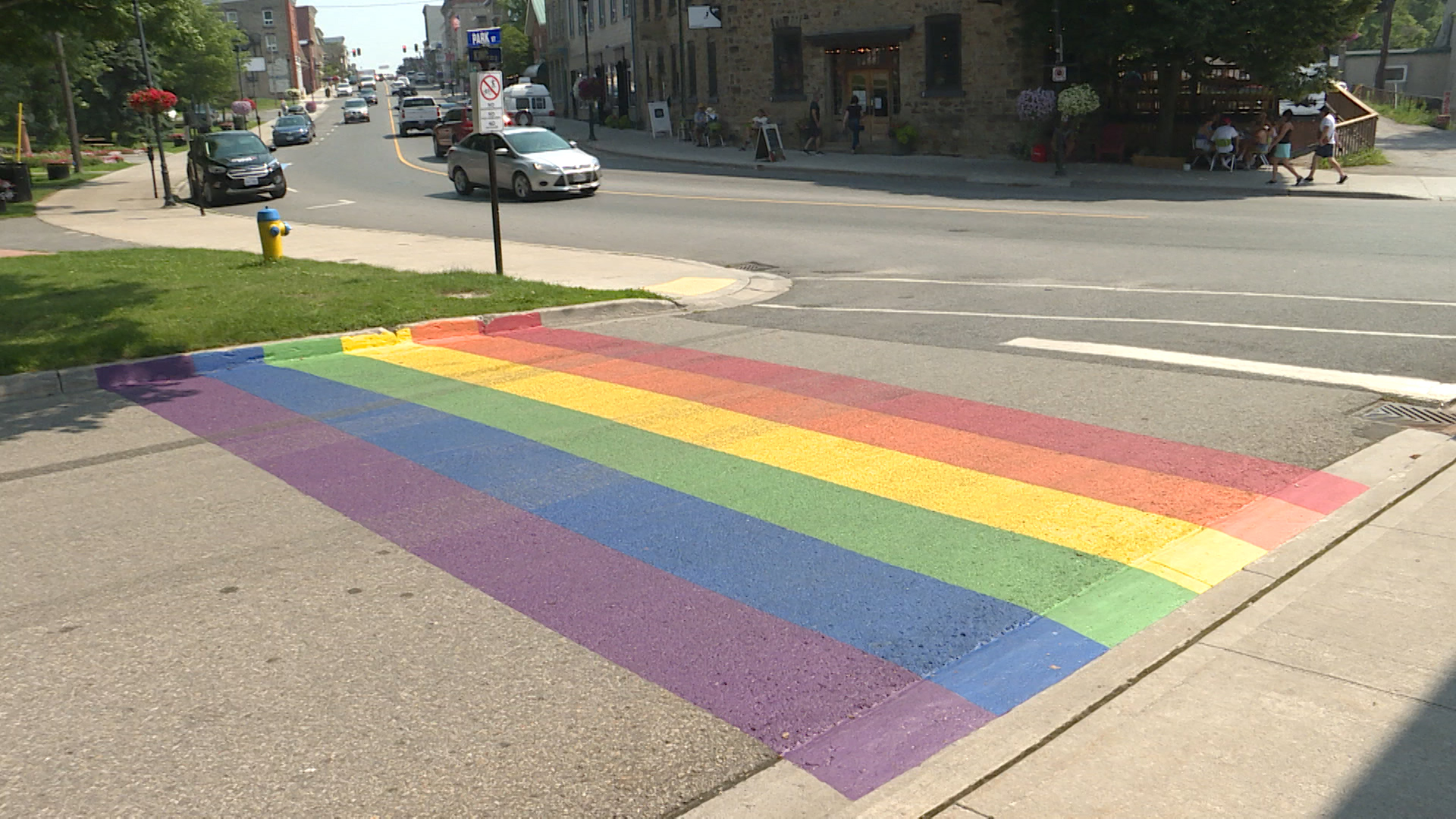 The first Pride flag crosswalk in Gananoque was painted on Friday, and was vandalized shortly afterwards.