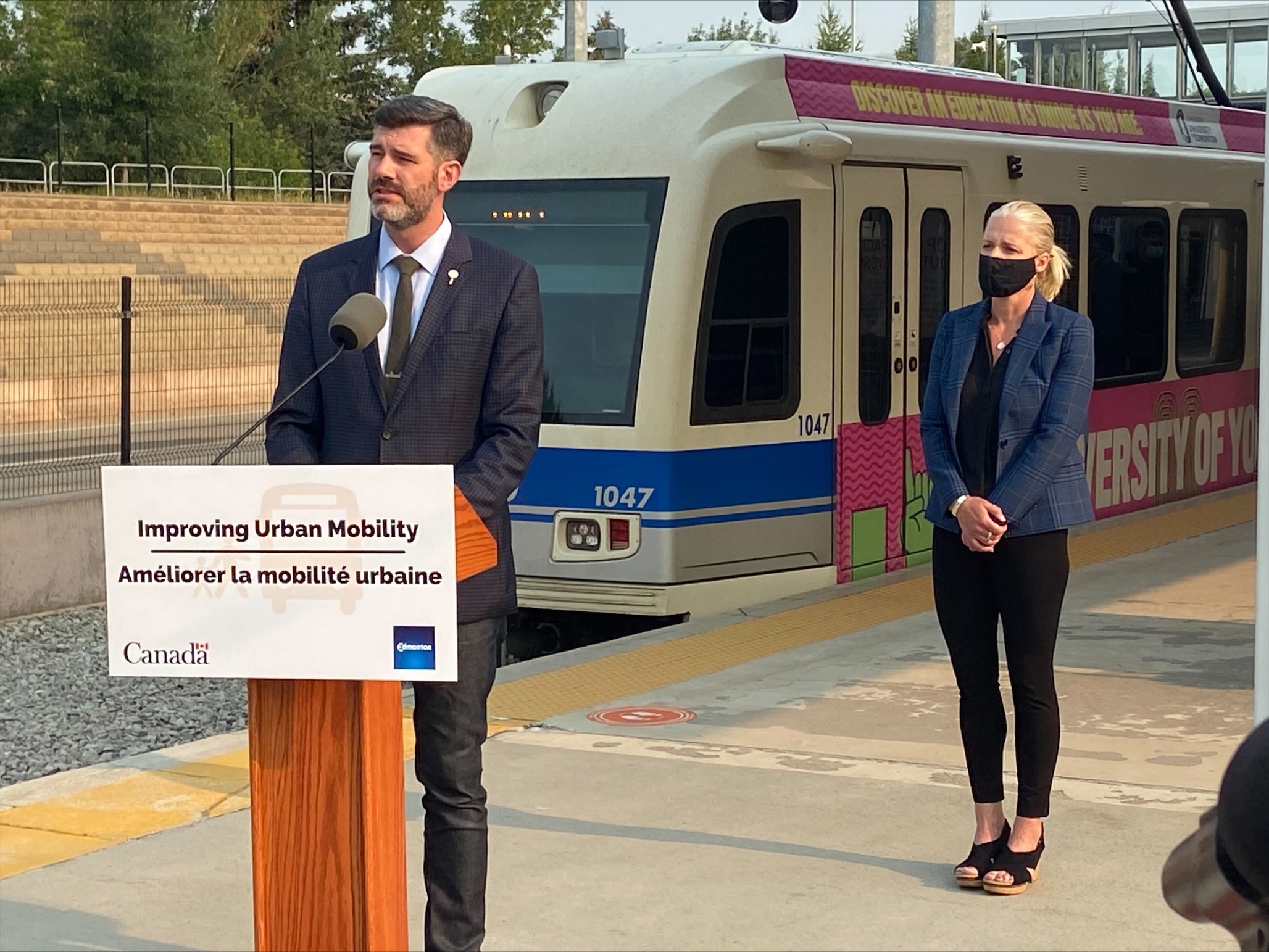 Canada’s Infrastructure Minister Catherine McKenna joined Mayor Don Iveson at the Century Park LRT Station Tuesday to announce nearly $400 million in federal funding toward Phase 1 of the Capital Line LRT expansion into southwest Edmonton.
