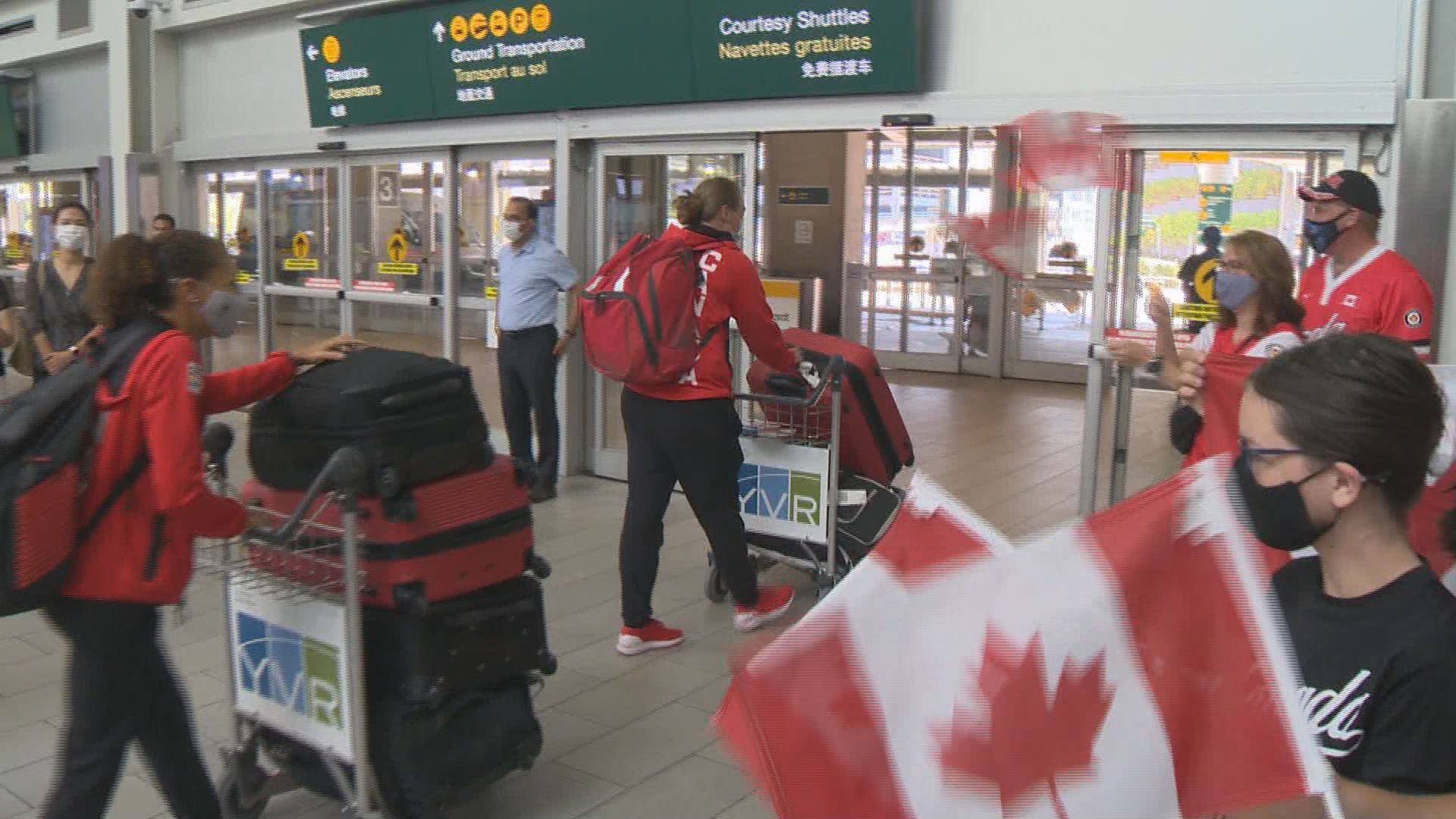 “This is a moment I’ve dreamed of since I was young, watching athletes walk out of the airport in their Canada gear with their medals and everything,” centre fielder Larissa Franklin of Maple Ridge told Global News.