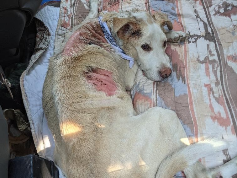 A B.C. dog that suffered wildfire burns in the South Okanagan is on the road to recovery.