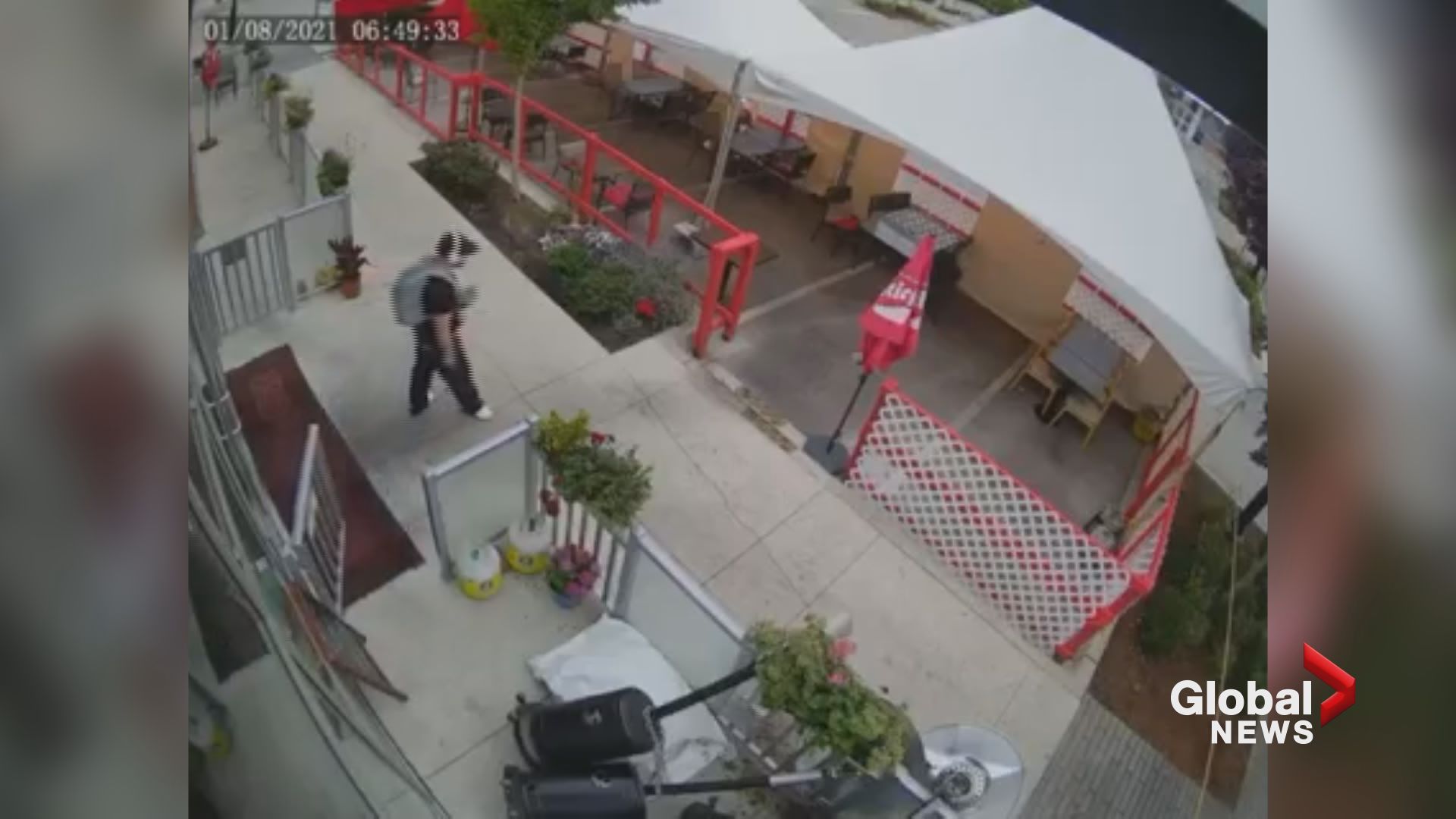 The Afghan Kitchen, a family-run restaurant on 24 Avenue, released video of someone damaging their patio. The video shows a suspect repeatedly bashing and thrashing the heaters causing significant damage before walking away.