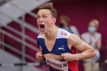When he saw the astonishing time, Warholm looked to be in shock. He ripped his vest apart and beat his chest in celebration before sinking to his knees.