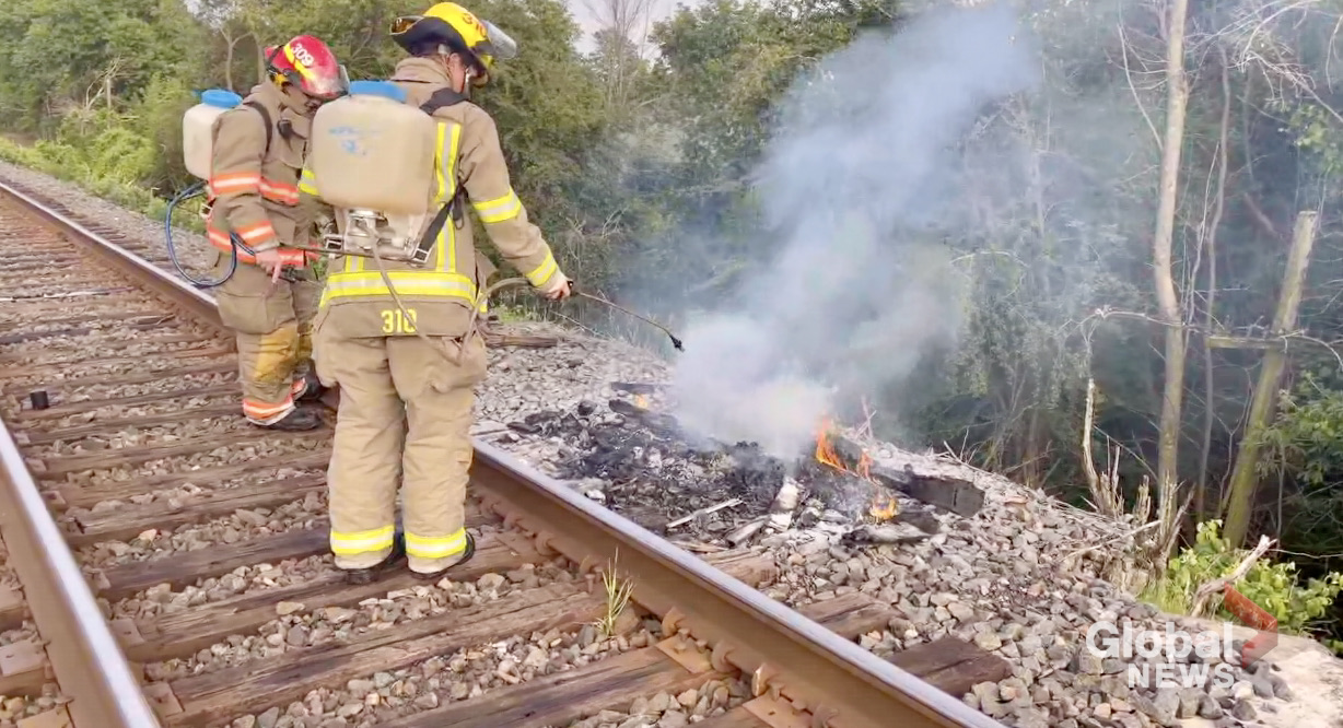 Around 7:30 p.m., firefighters from Hamilton Township and Cobourg responded to a reported fire along the CP Rail tracks near Hamilton Road.