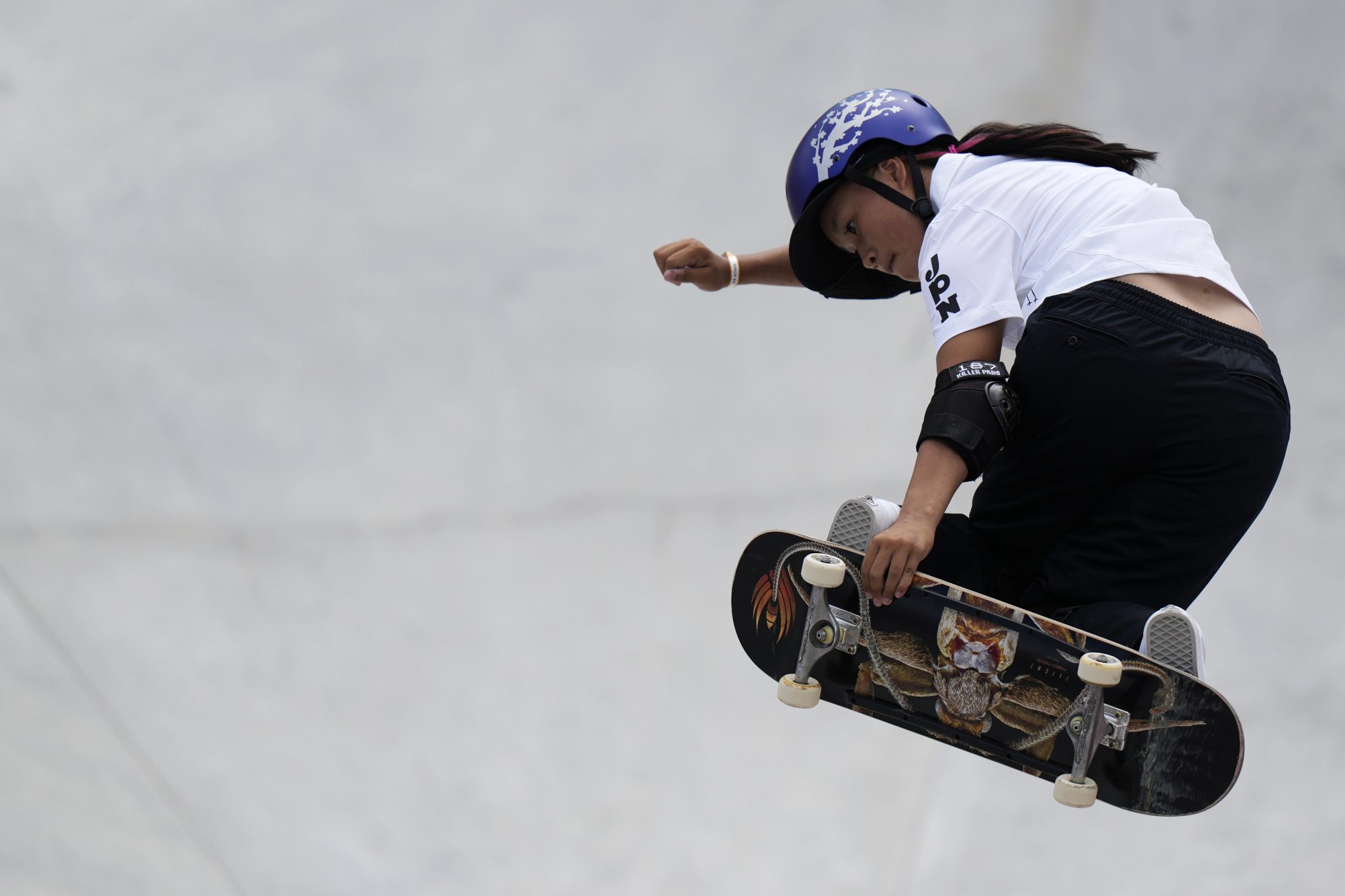 At times, the young skaters looked impossibly small against the giant grey and purple ramps and bowls at the Ariake Urban Sports Park that is emblazoned with the five Olympic rings.