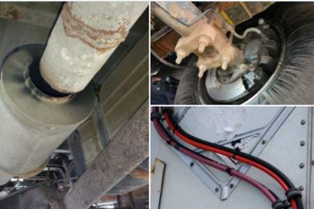 Some of the offences included loose drive-shaft components, improper mufflers, improper braking systems and hazardous waste placards not being displayed properly.