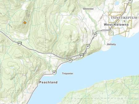 Believed to be lightning-caused, it’s also located around seven km west of West Kelowna’s Glenrosa neighbourhood and roughly two km north of Highway 97C.