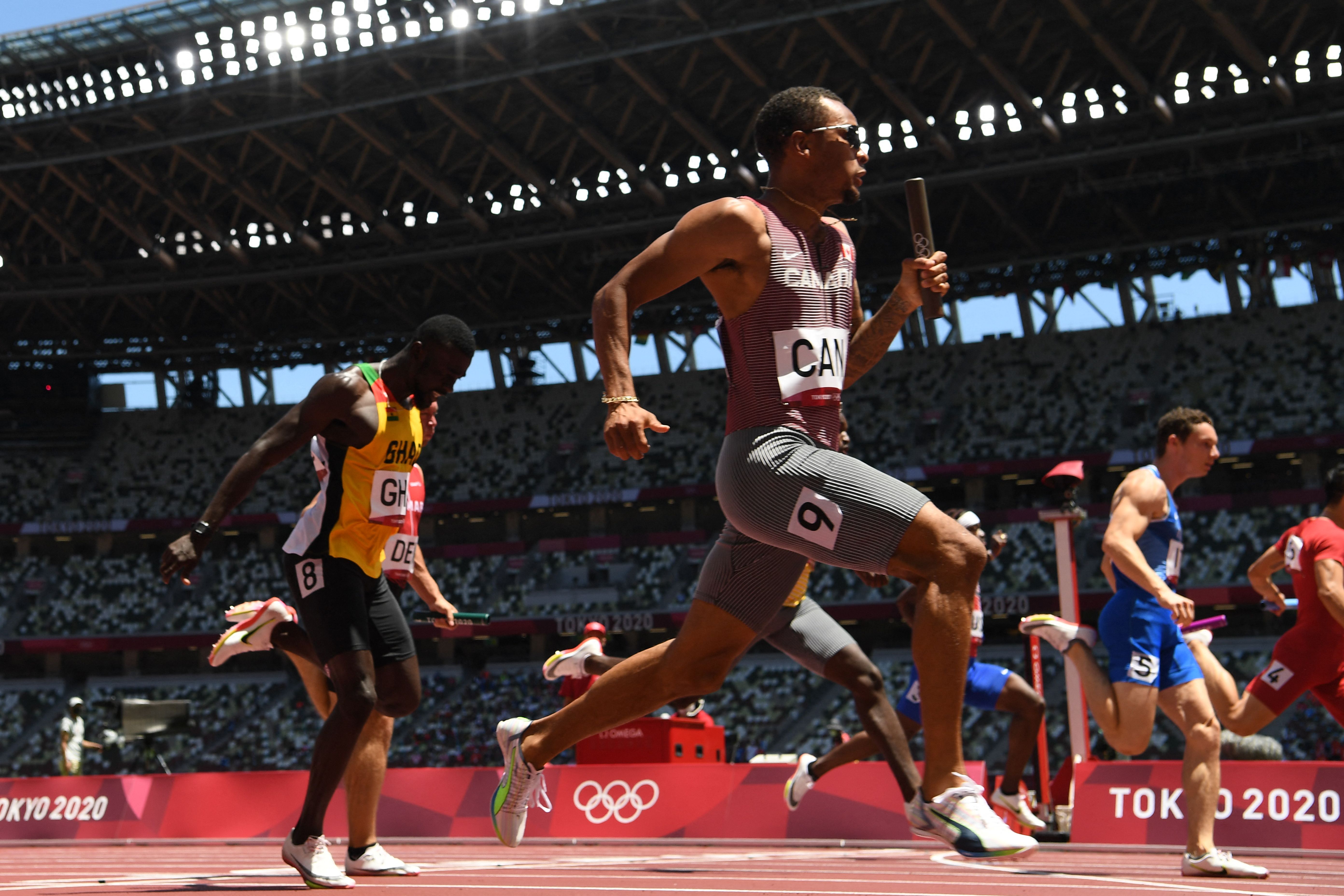 The 26-year-old from Markham, Ont., overtook the Chinese runner in the final leg as Canada finished in a season-best time of 37.7 seconds. Italy finished first in 37.5 seconds, claiming the gold medal, followed by Great Britain in 37.51, which earned that team the silver.