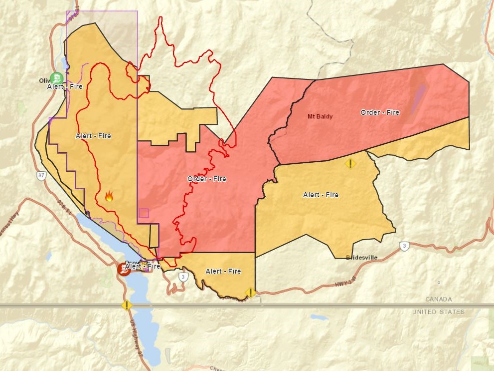 The fire is estimated at 16,005 hectares and is located around six kilometres north of Osoyoos. As of Thursday, it was classified as out of control.